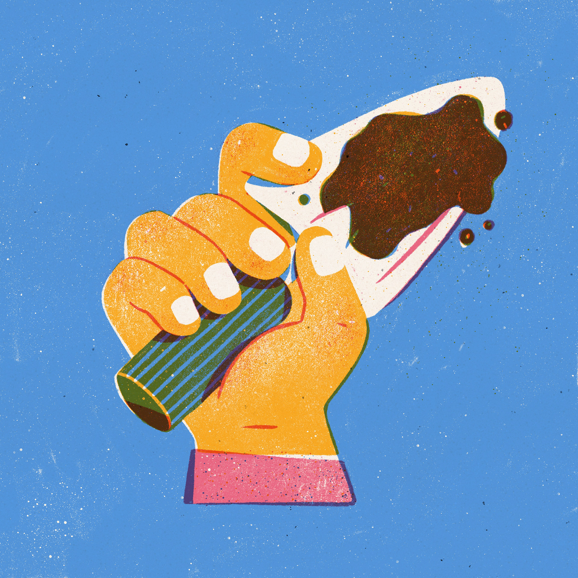 Starting or ending my workdays with a simple illustration, through which I hope to experiment with more diverse themes, as well as textures. To keep it relatively simple for myself, I pre-make a list of subjects, I choose one subject per week, use 2 or 3 pre-picked colours, and spend a maximum of 45 minutes (preferably less) on each.