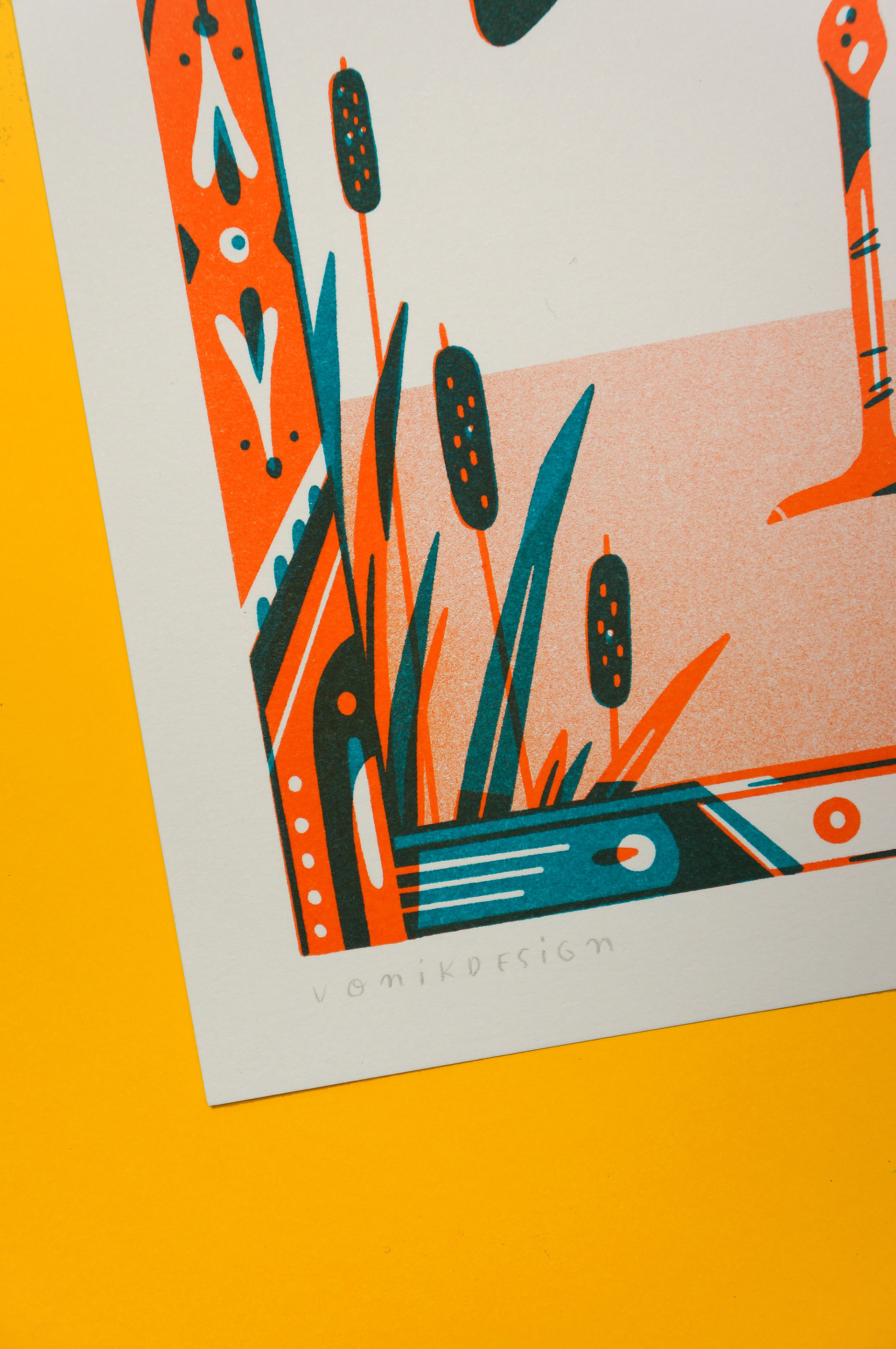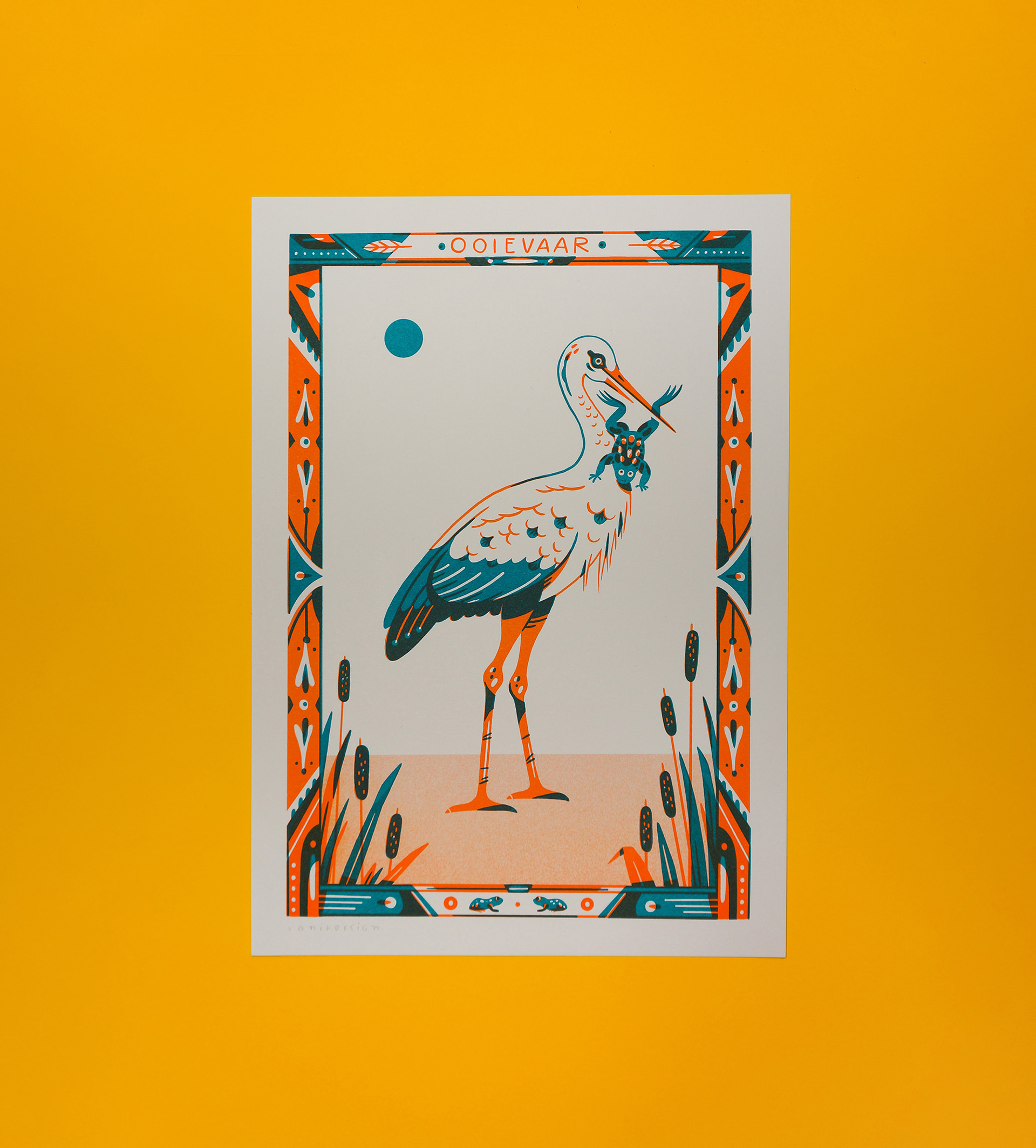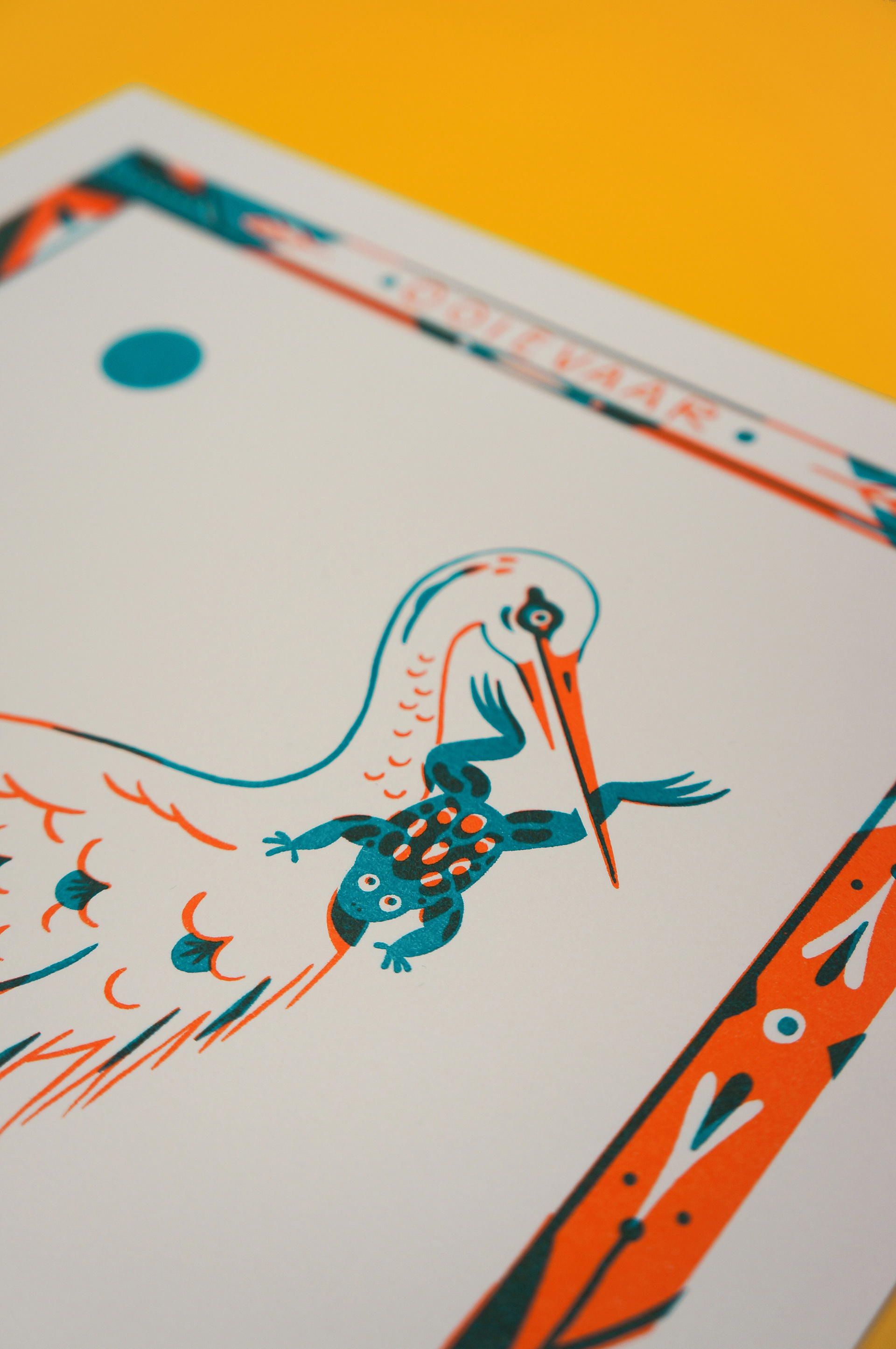 Personal work • Two of my favourite birds, the Heron and the Stork. The first edition was a red and blue colour combo, the second run is teal and orange. These A4 prints are available in my webshop.